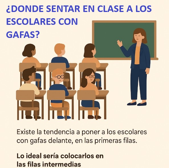 La ubicación ideal para los escolares con gafas y buena agudeza visual es en las filas intermedias del aula. ¿Por qué?